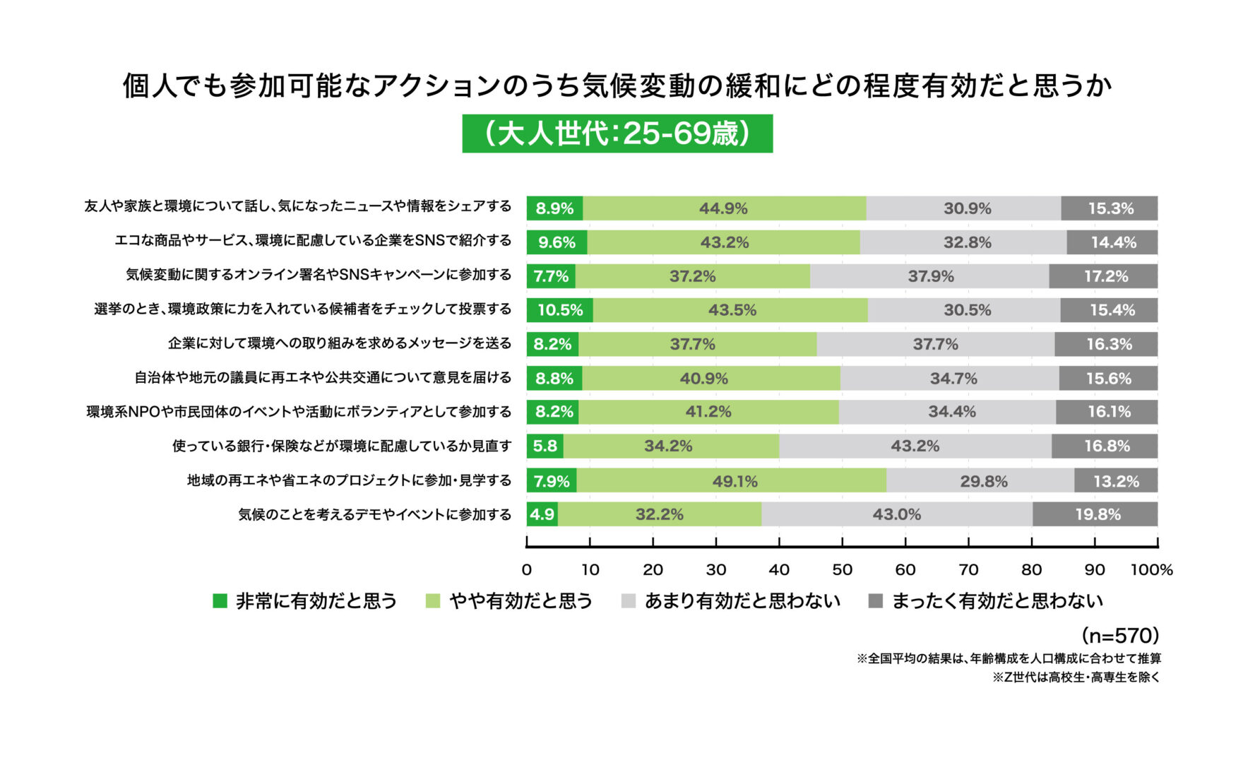 意識の高さを制度・投資・市場の仕組みに落とし込むこと—再エネ支援、地域循環経済、移動・食・資源のトランジションを公正に進めること(Just Transition)が、「体感の不安」を「実装の前進」へ変える近道です。