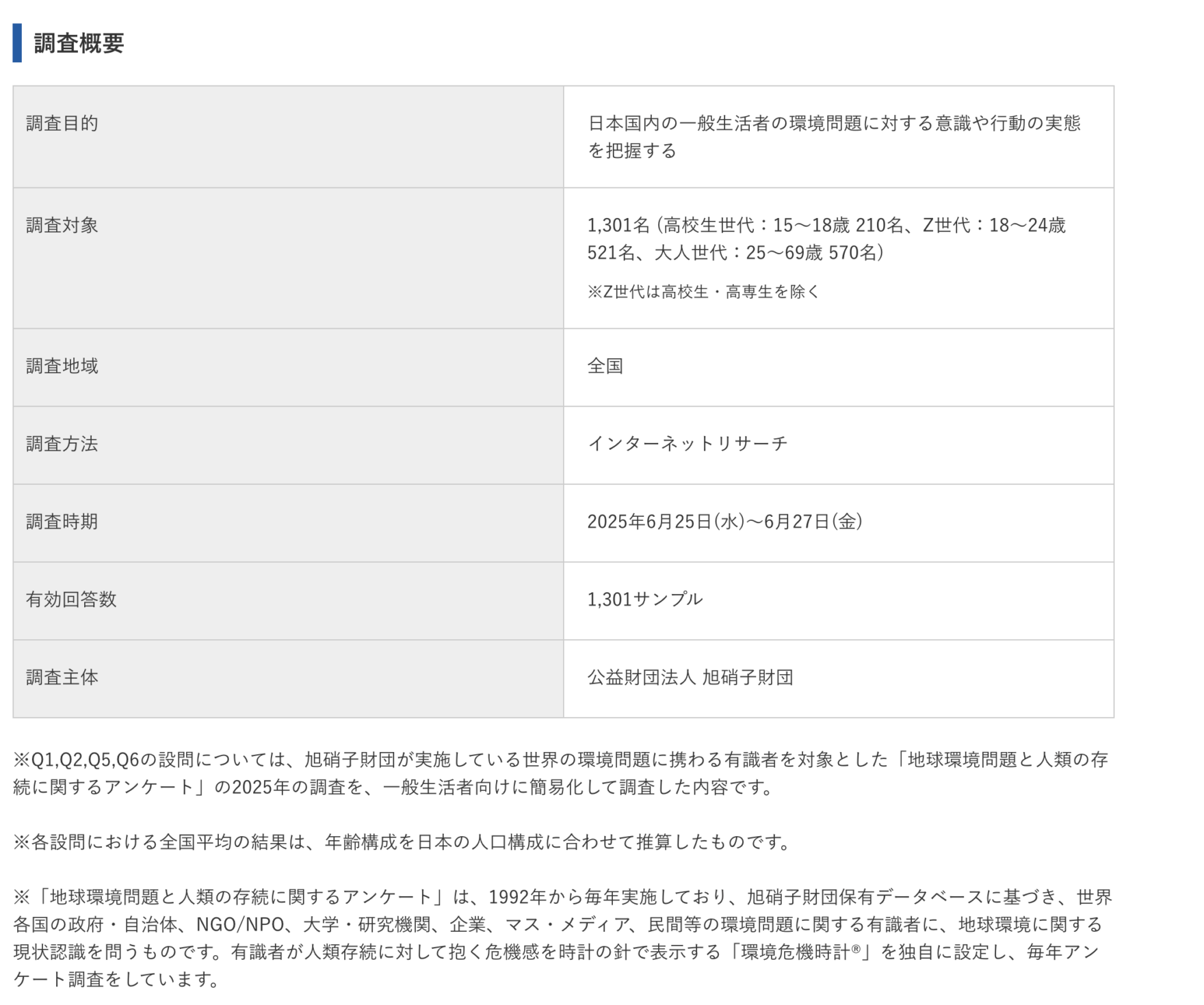 - 調査:第6回 生活者の環境危機意識調査(2025年)/公益財団法人 旭硝子財団