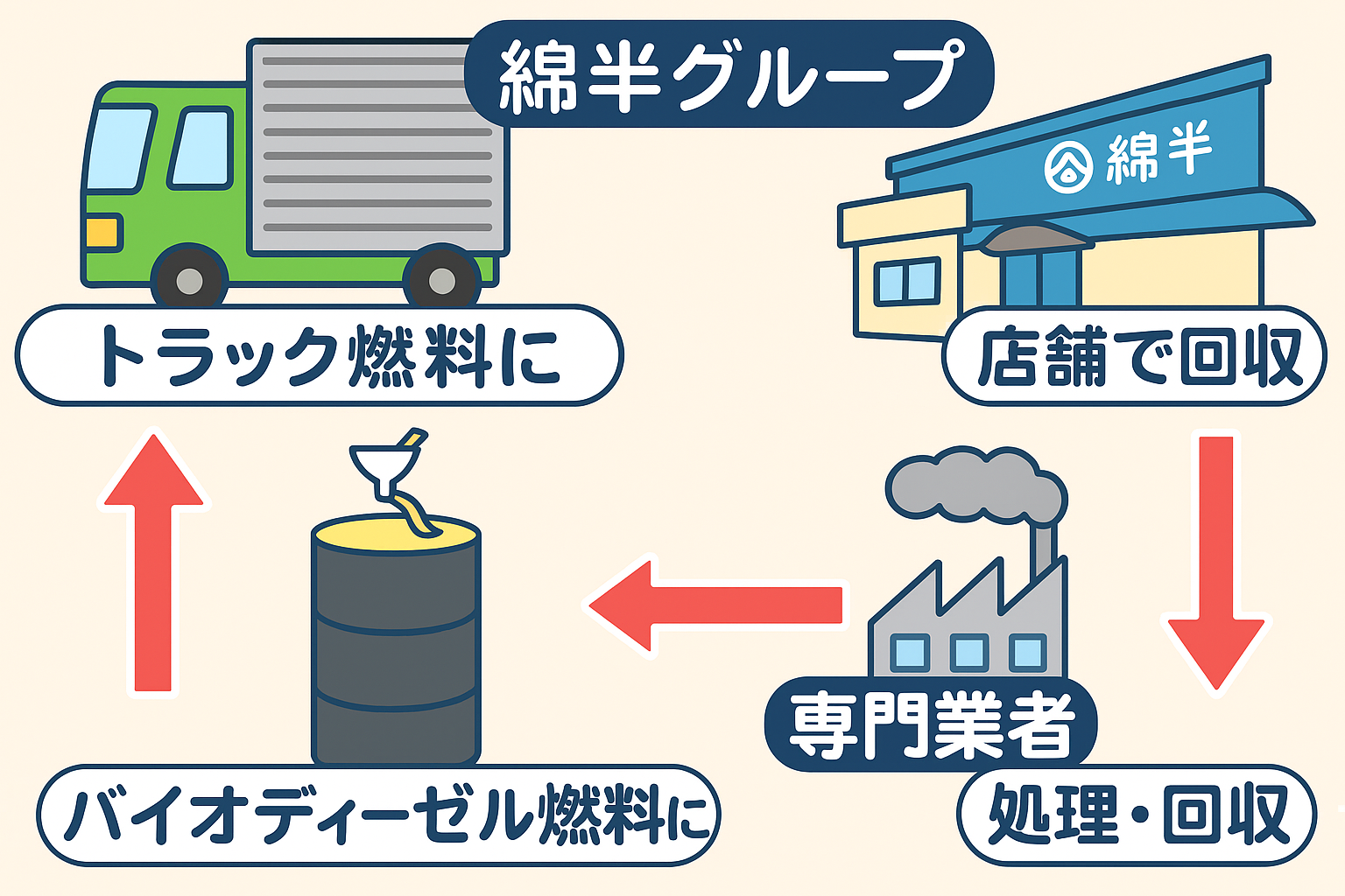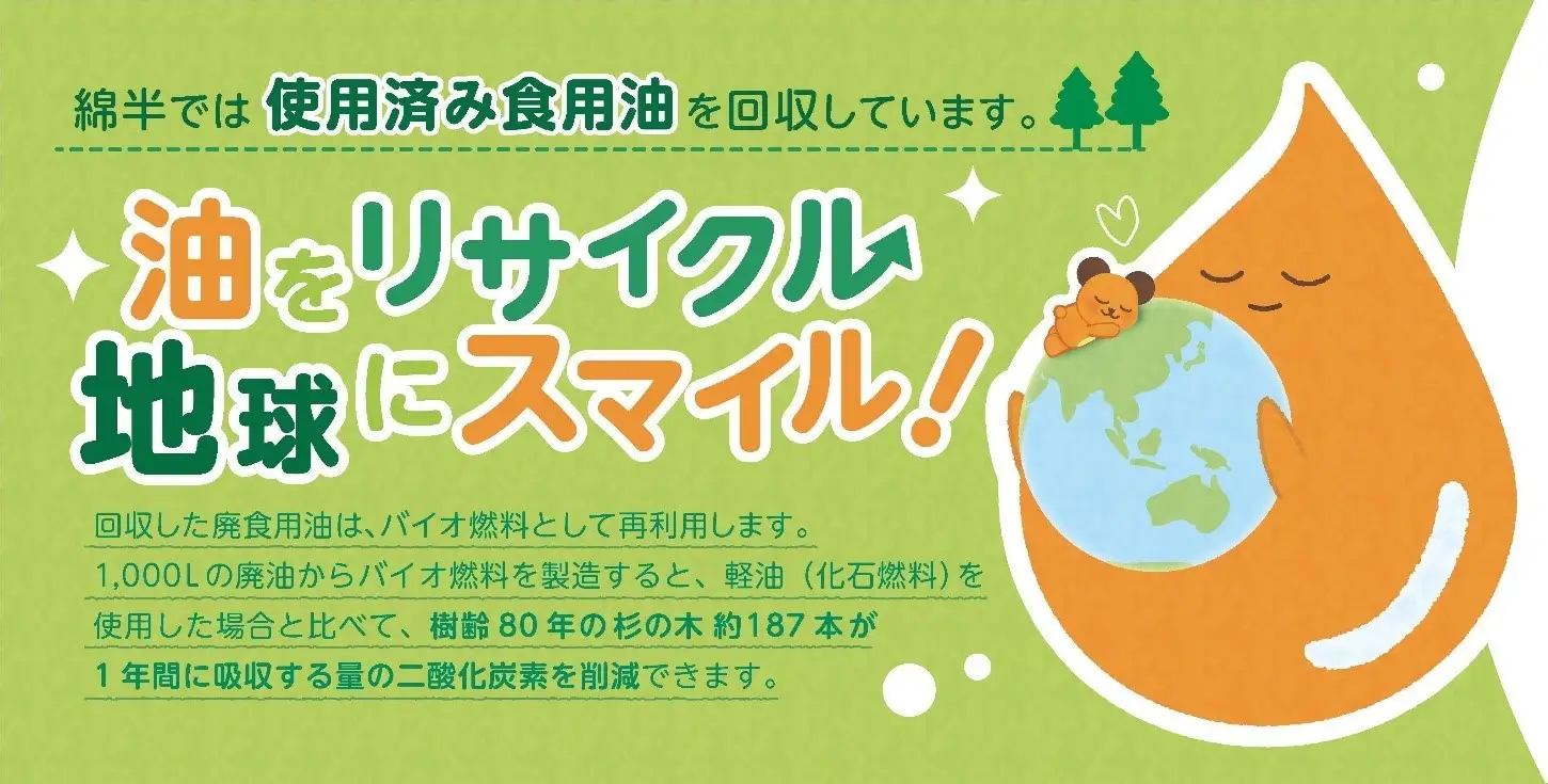 そこに着目したのが、長野県を中心にスーパーやホームセンターを展開する綿半グループです。同グループは2025年1月より、家庭から出る使用済み食用油の回収サービスをスタート。開始からわずか半年で累計2,500リットルを回収し、9月末には6,374Lに到達しました。