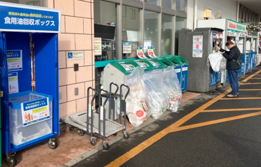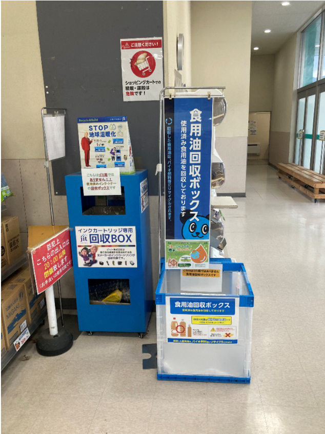 当社は地域密着型の流通事業者として、日常的に多くのお客様と接しています。その中で、家庭で排出される使用済み食用油が可燃ごみとして廃棄されている現状を目の当たりにし、「これは立派な資源である」と改めて認識しました。また、当社の店舗ではこれまでも空き缶やペットボトル、段ボール、新聞・雑誌などの古紙回収を通じてリサイクル活動を推進してきました。その一環として、食用油もリサイクル可能な資源であることに着目し、新たに食用油の回収を開始しました。