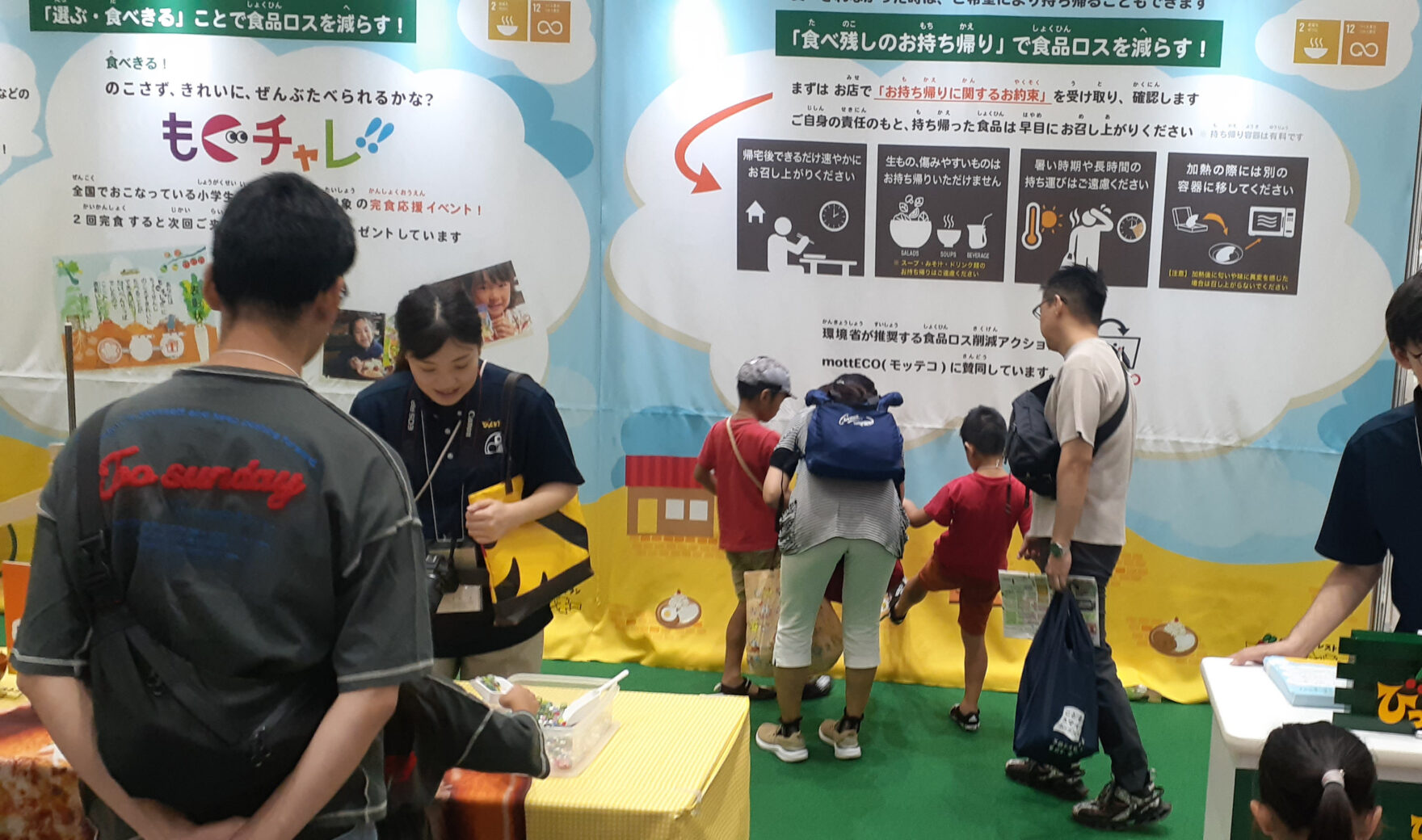 GOOD LIFEフェアでは、残さず食べることの大切さや、びっくりドンキーの食品ロス削減の取り組みについてミニゲームを通して体験できるブースが設けられ、親子で参加される来場者が多く見られました。