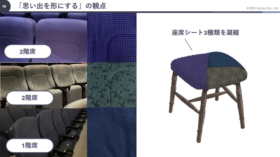 「クラウドファンディングの発想は、劇場を支えてきた物品の処遇という問題から生まれました。長年使用されてきた椅子やスクリーン、緞帳などを単に廃棄するのではなく、アップサイクルによって価値をつなげる方法を選択しました」