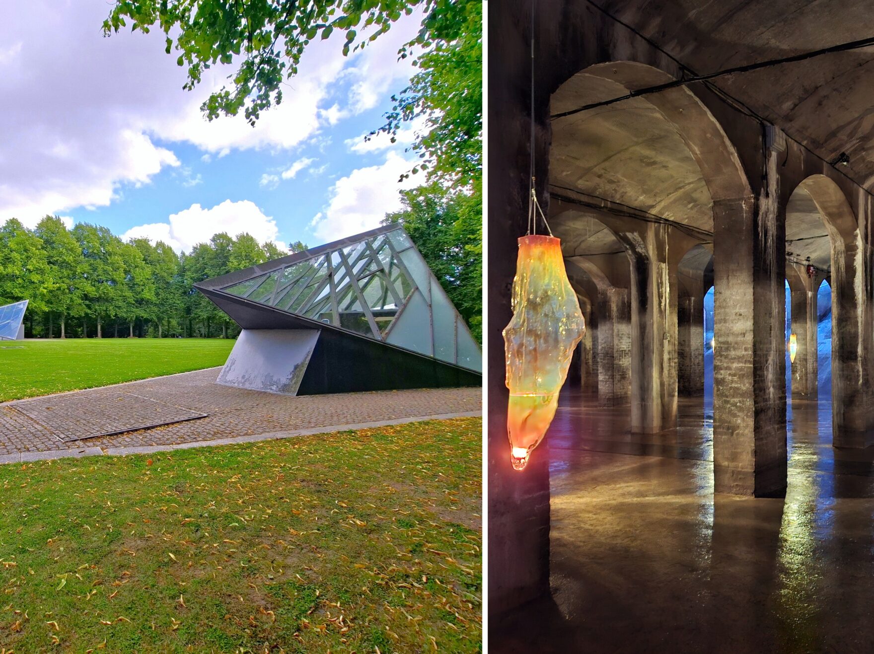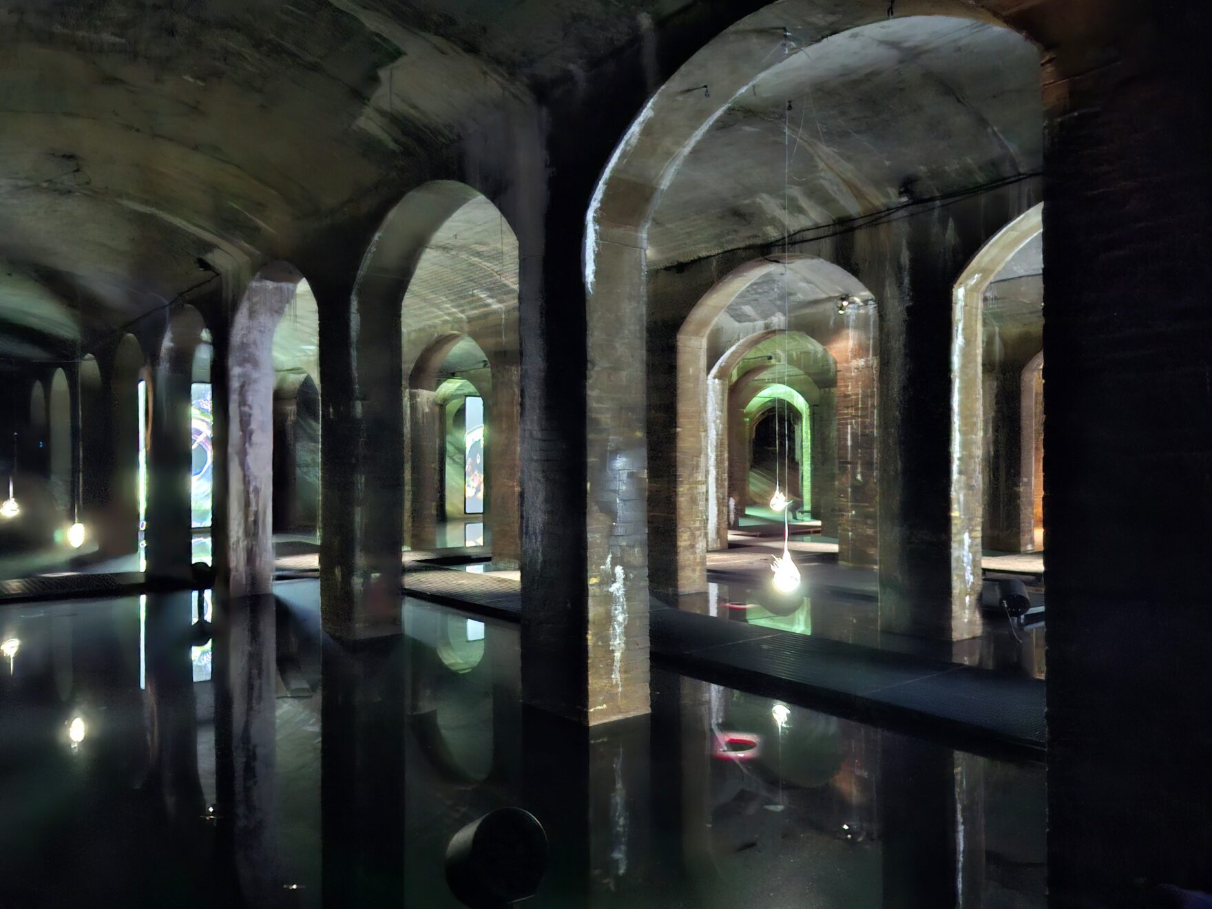 ヨーロッパの美術館は多数訪れましたが、システルネン(Cisternerne)のような場所は稀です。この美術館は公園の芝生の地下に広がり、ガラス屋根の出入口と階段でアクセスできます。4320㎡の広大な地下空間は自然光が差し込まない、1850年代に建設された古い貯水池。約1600万ℓの水を貯め、コペンハーゲン市民に供給していました。1933年に貯水池としての役割を終えて以来、60年以上も使われていませんでした。