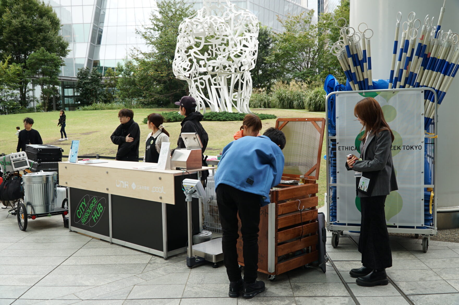 会場には「CITY RESOURCE HUB」コーナーが設けられ、イベントや周辺で発生する不用物を"資源"と捉え、回収・分別・分析するステーションとして機能。都市型資源循環のあり方を探るとともに、「ごみを捨てる」から「資源を循環させる」への意識転換を促していました。