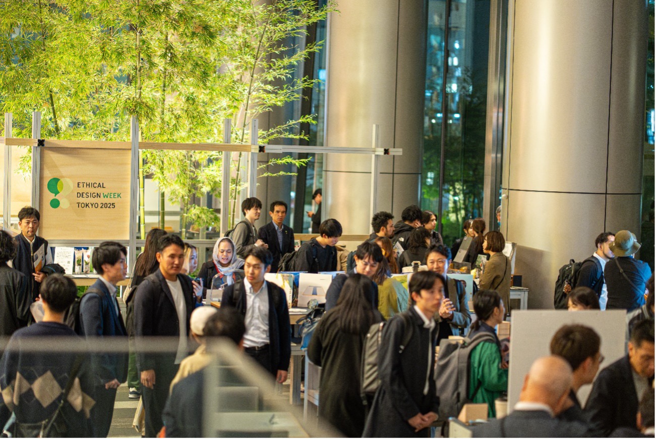 会場となった虎ノ門ヒルズは、都市の中心でありながら緑豊かな空間を持ち、人々が思い思いに過ごせる環境が整っています。イベント期間中は多くの来場者で賑わいを見せ、この空間は単なるイベント会場ではなく、エシカルデザインを体現する場として機能していました。