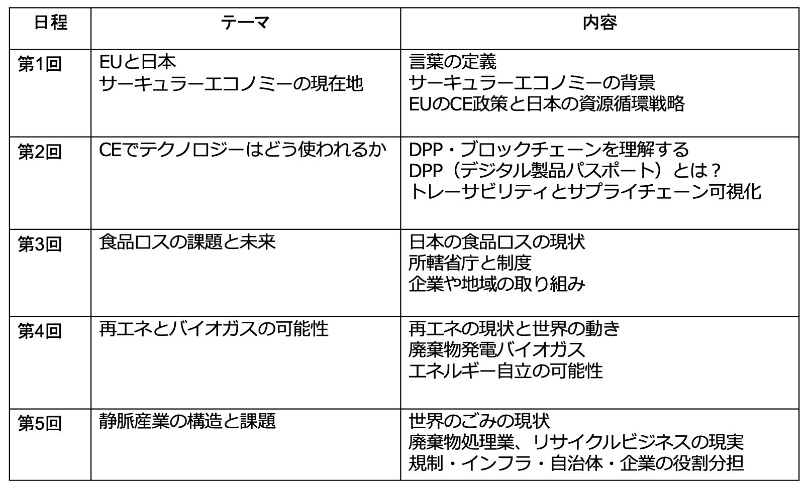 今回は、講座のご紹介として、第1回の「EUと日本 サーキュラーエコノミーの現在地」の内容を要約してお届けします。
