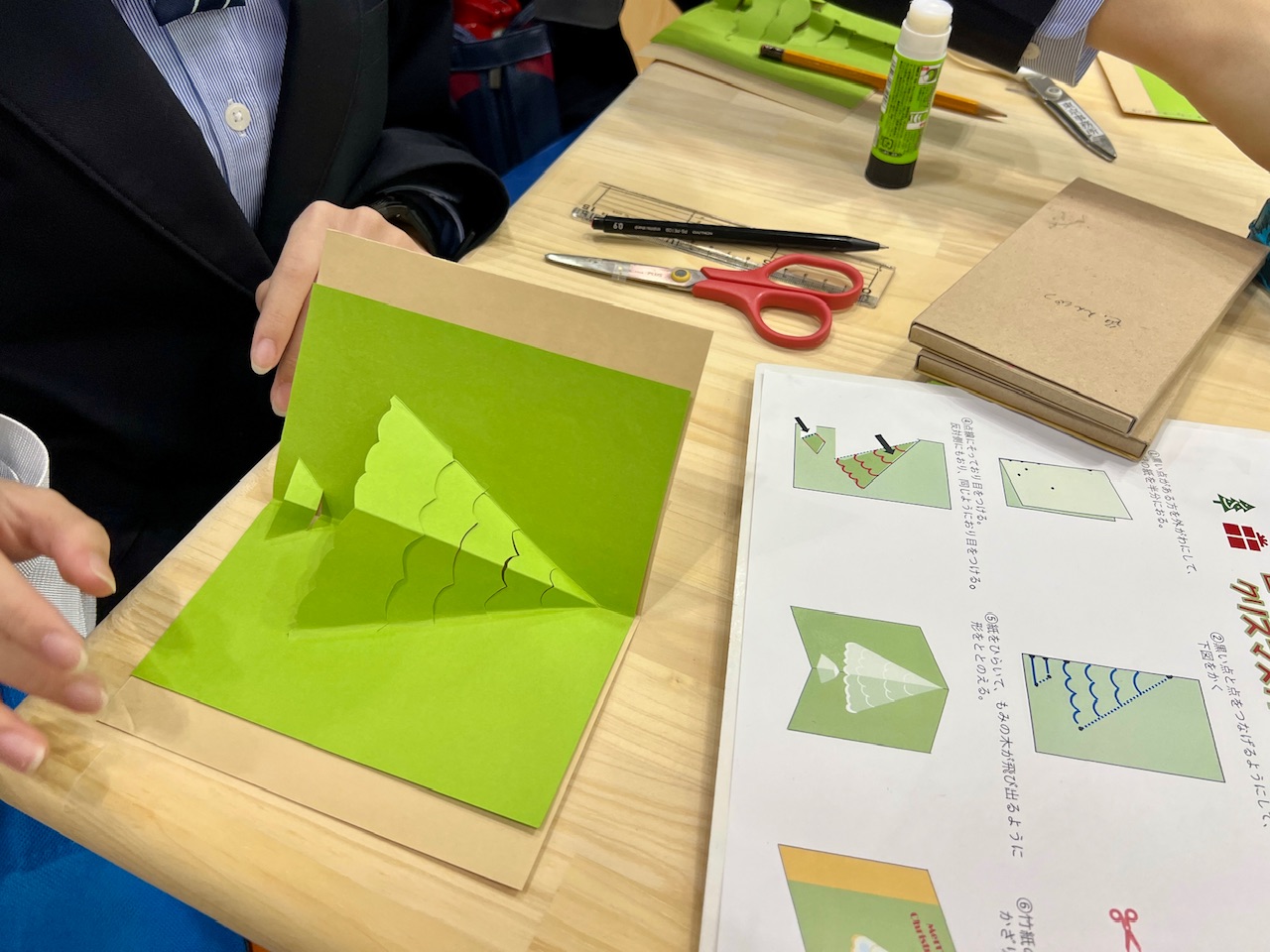 会場では、竹紙を使ったクリスマスツリー作りなど、実際に竹紙に触れることのできるワークショップなども開催。あえて、漂白せず、竹紙の素材の色をいかしたナチュラルなカラーは目にも優しく、印刷した文字が読みやすいという利点もあります。