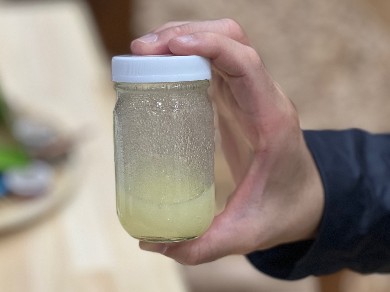 会場では「セルロースナノファイバー」が乳化する様子をデモンストレーションするワークショップありました。油と水はそのままで決して混ざらない性質ですが、「セルロースナノファイバー」を入れて瓶を振るとあっという間に混ざり乳化する様子に驚きでした。