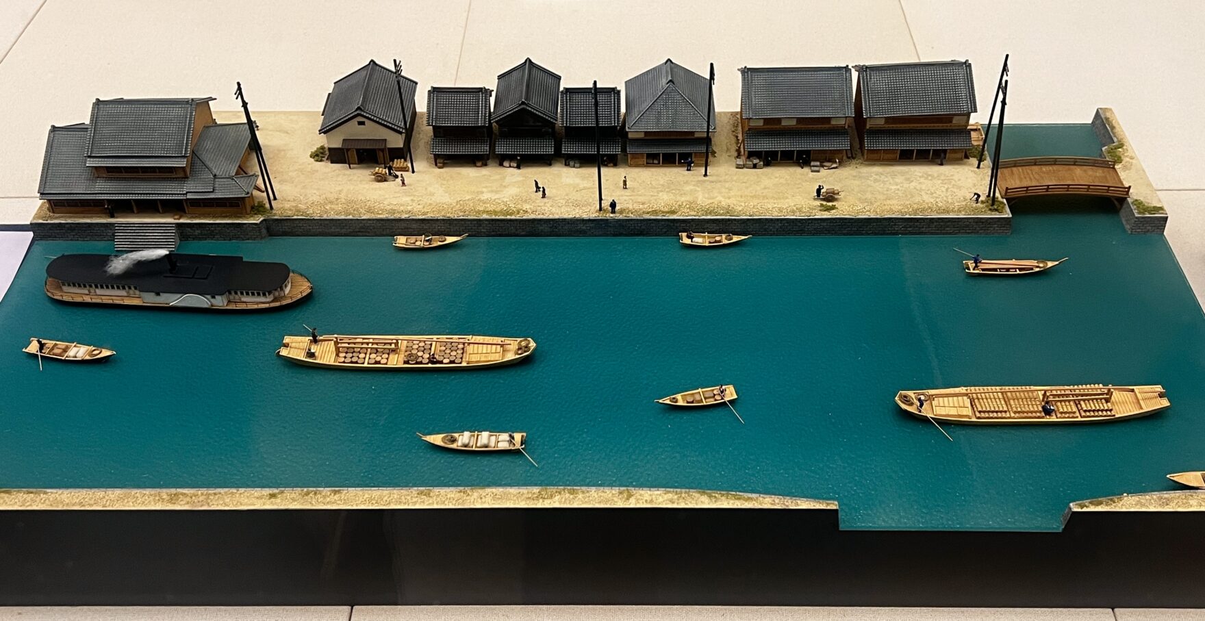 次に、江戸の循環を加速した水路について見ていきましょう。調査に訪れた深川江戸資料館の地図で、江戸を東西に流れる「川」の存在を見つけました。