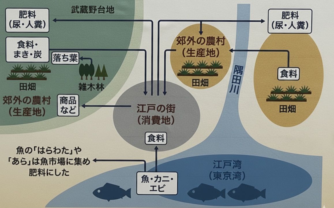 そして注目すべきは、世界でも珍しい「糞尿」の循環が行われていたことです。面白い現象として、様々な書籍や動画が出ているのでご存じの方も多いと思います。