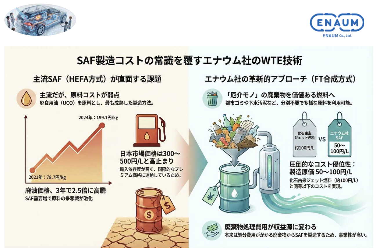 —エナウムのWTEシステムで生成できるSAF(再生航空燃料)の特徴を教えて下さい。