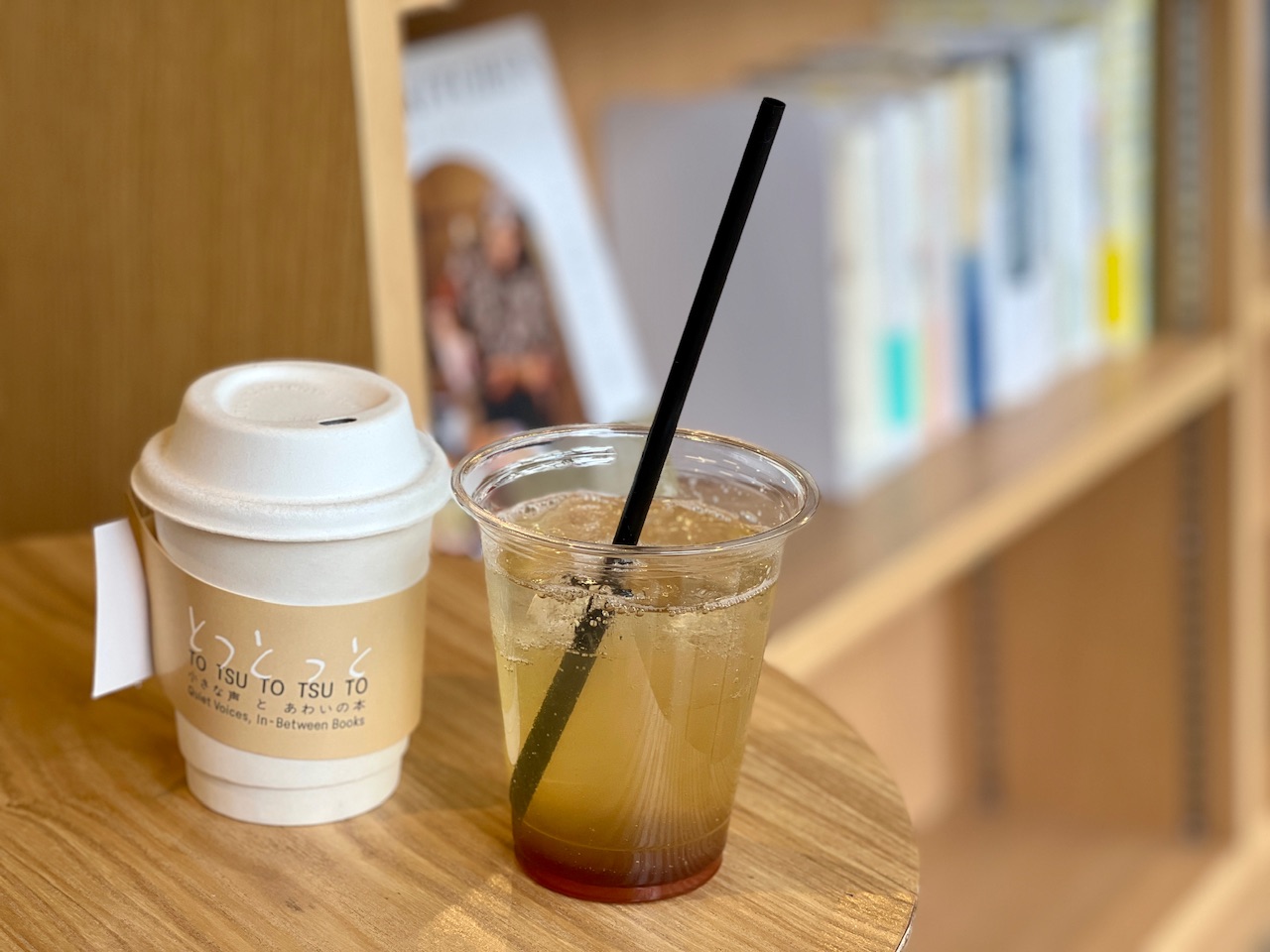 屋上の養蜂場で採れた蜂蜜は、一階の本屋・コーヒースタンドの「とつとつと」でドリンクとして楽しむことができます。