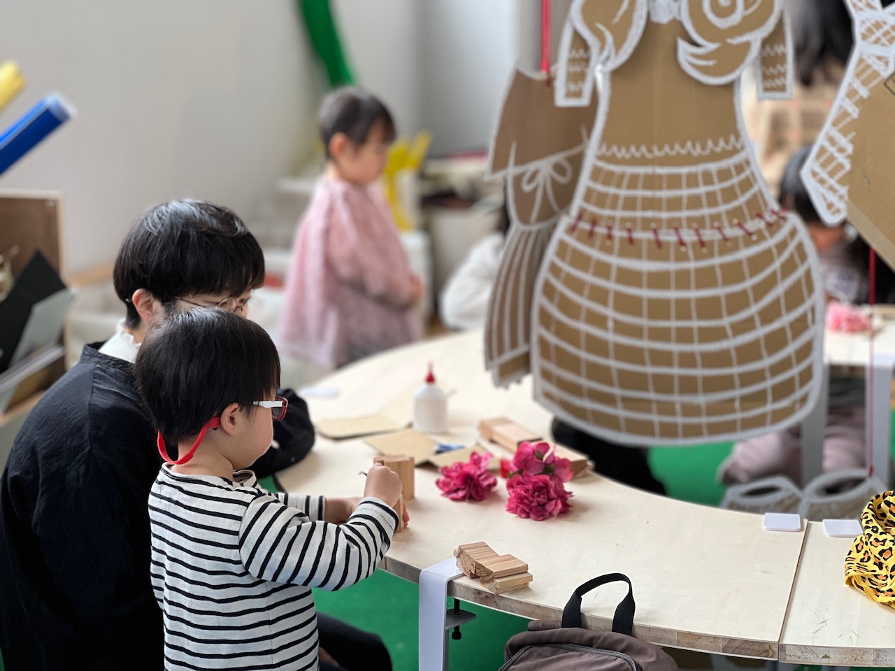 「コドモデパート」に初めてのお子さんが殆どにも関わらず、自由でのびのびとした雰囲気もあって、どのお子さんも夢中になって作品を作っていました。